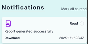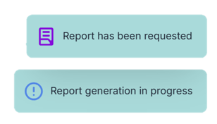 A pop up in the bottom right hand corner will show a report has been requested and is being generated.