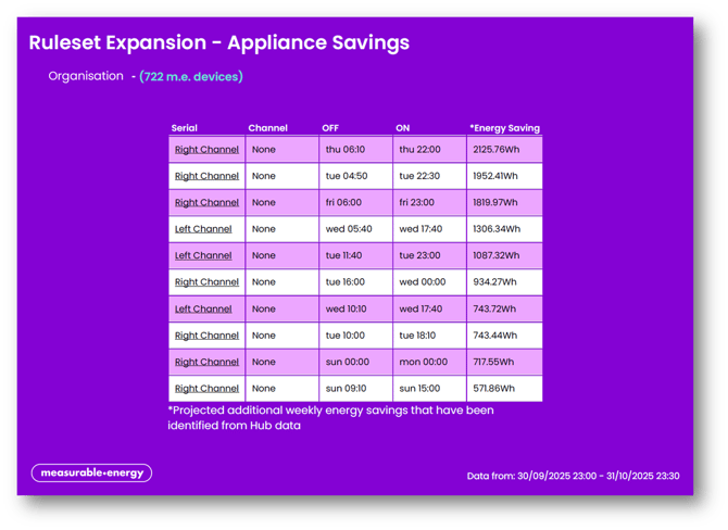 This will provide ruleset expansion recommendations at the individual appliance level. It will order them in terms of highest energy savings and link directly to the appliance on the Hub.
