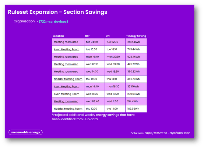 This will provide ruleset expansion recommendations at the section or room level. It will order them in terms of highest energy savings and link directly to the location on the Hub.