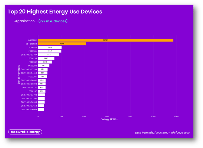 This will provide the top 20 energy use appliances over the time range selected with the view of identifying hot spots.